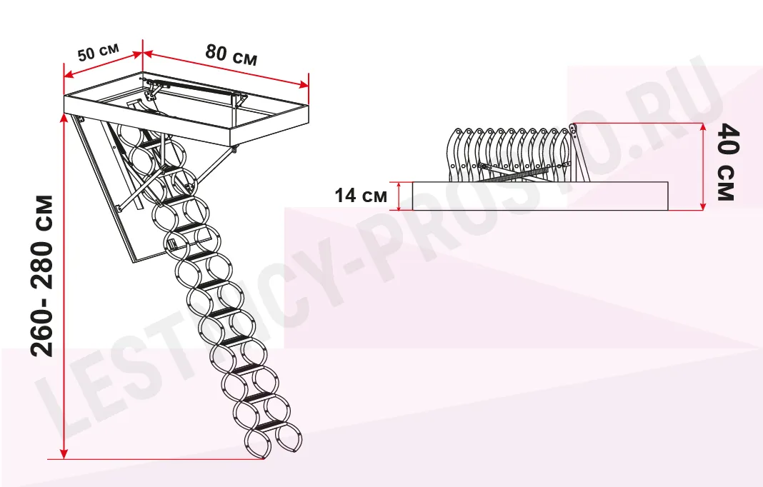 Чердачная термоизоляционная ножничная лестница FAKRO LST 50×80 см, h-280 см