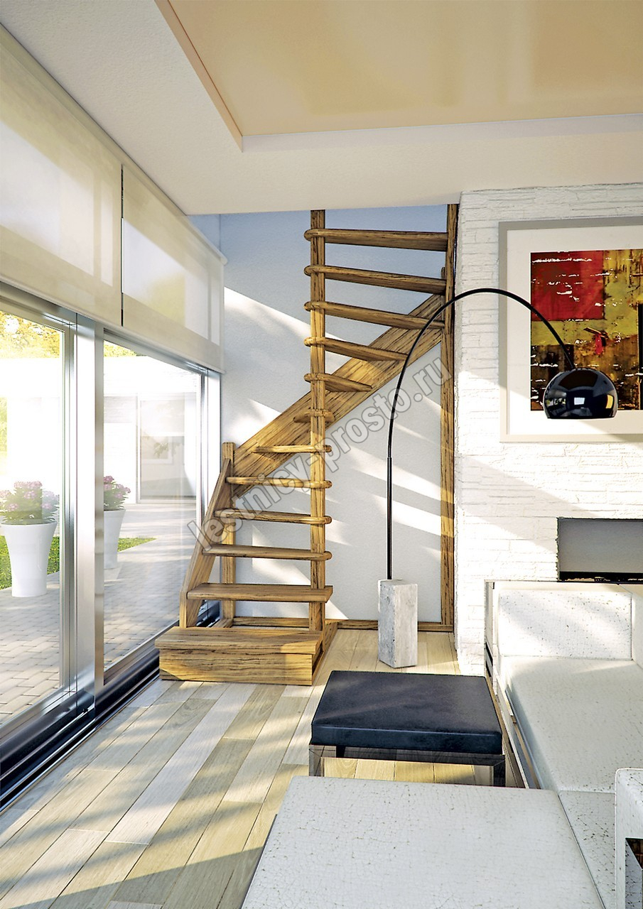 Деревянная межэтажная лестница ЛЕС-01 2915-3075 проем 1630-1370, Лиственница