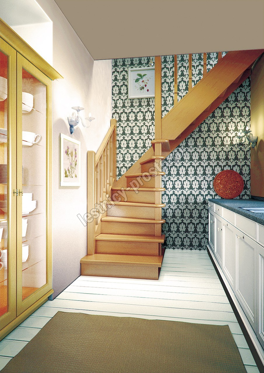 Деревянная межэтажная лестница ЛЕС-02, Сосна