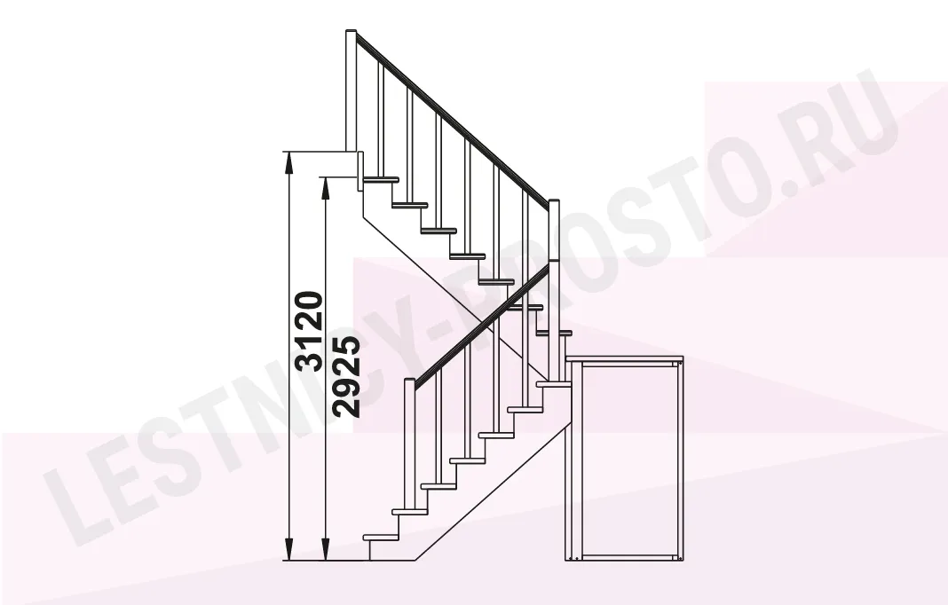 Базовый комплект включает в себя элементы лестницы и ограждения без какого-либо покрытия.