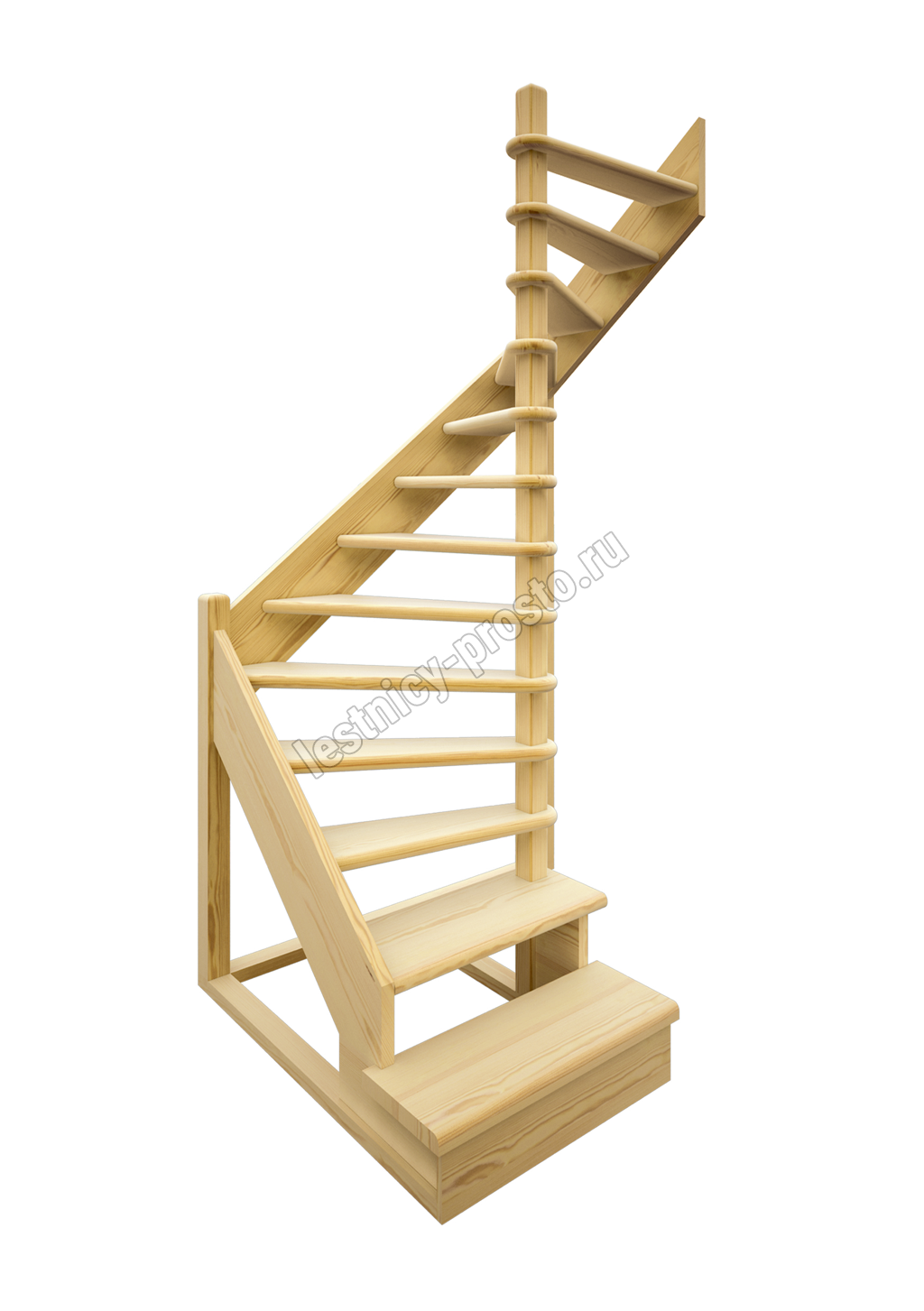 Базовый комплект включает в себя деревянные элементы лестницы без какого-либо покрытия.