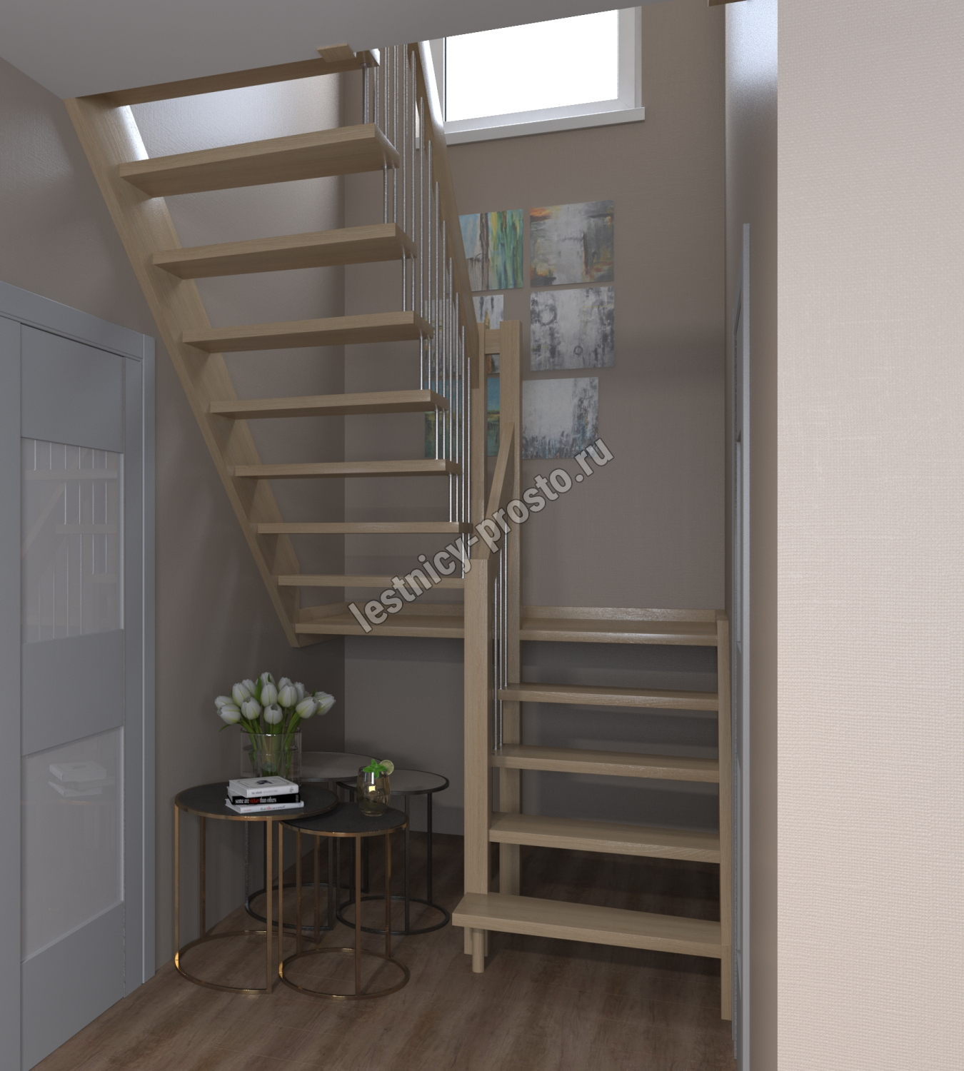 Лестница Prosto Console п-образная забежная, дуб h300 см