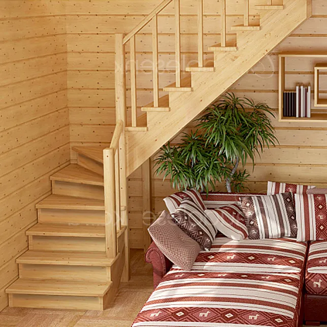 Лестница из сосны К-001М/2 под покраску с подступёнками