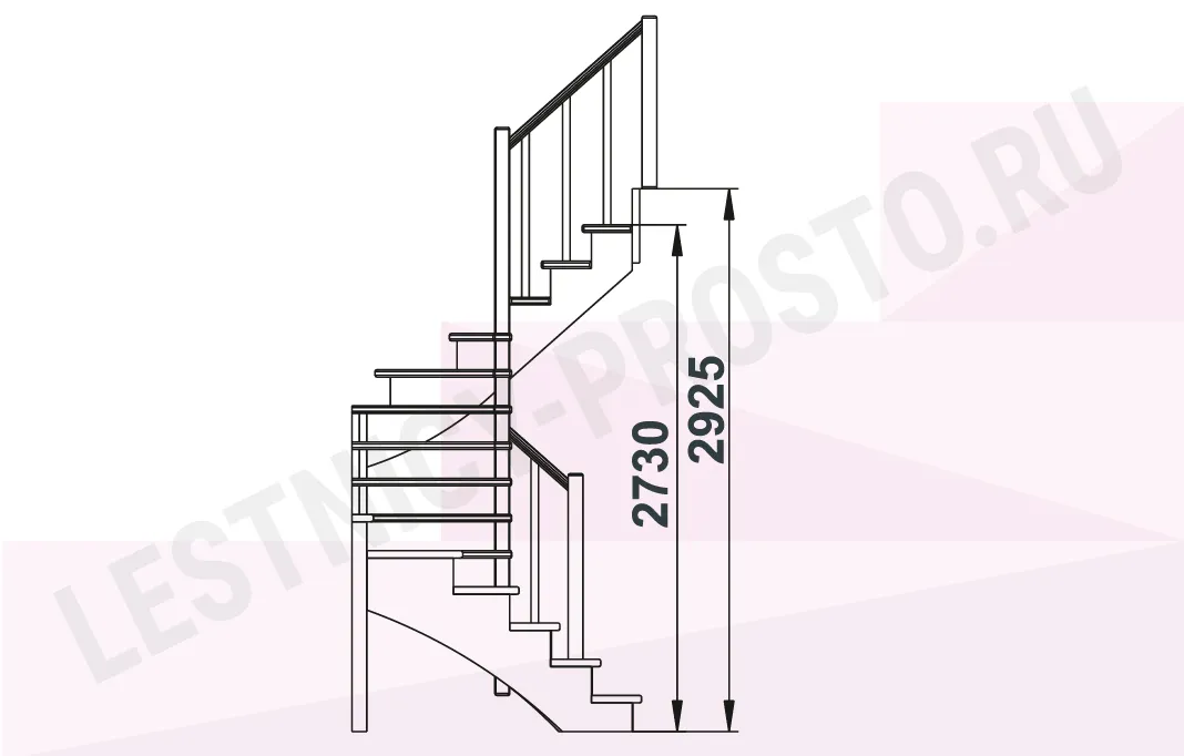 Базовый комплект включает в себя деревянные элементы лестницы с подступёнками и ограждения без какого-либо покрытия.