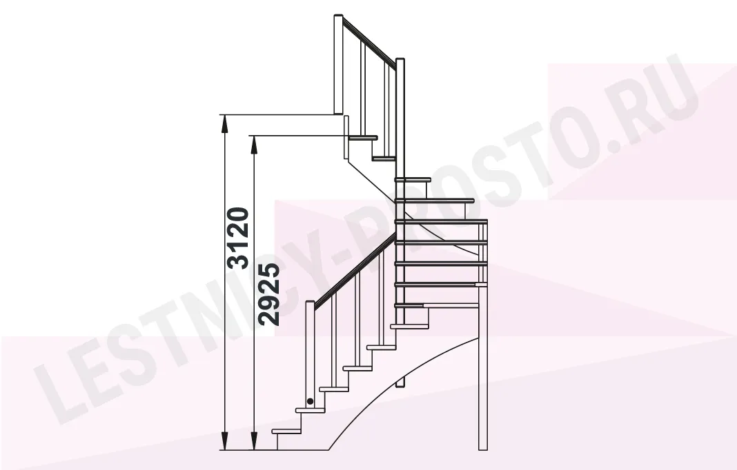 Схема лестницы К-003М/3 с поворотом налево