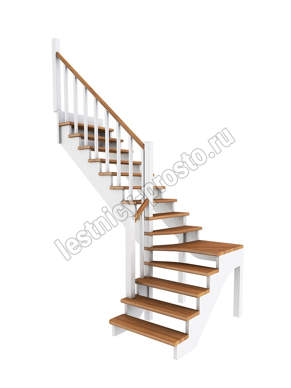 Базовый комплект включает в себя деревянные элементы лестницы и ограждения без какого-либо покрытия.