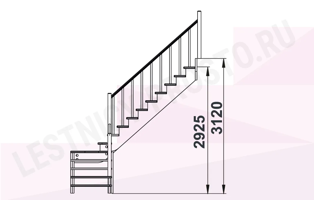 Базовый комплект включает в себя деревянные элементы лестницы и ограждения без какого-либо покрытия.