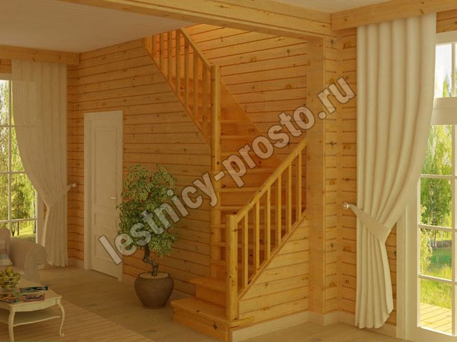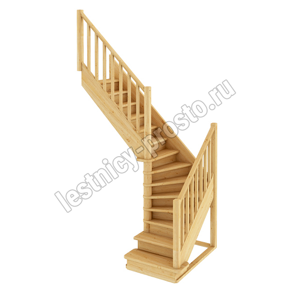 Базовый комплект включает в себя деревянные элементы лестницы с подступенками и ограждения без какого-либо покрытия.