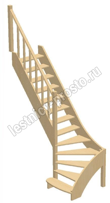 Базовый комплект включает в себя деревянные элементы лестницы и ограждения без какого-либо покрытия.