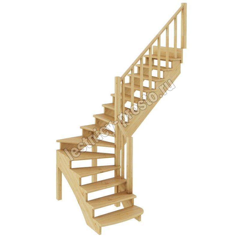 Базовый комплект включает в себя деревянные элементы лестницы и ограждения без какого-либо покрытия.