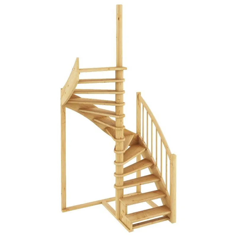 Ступени и поручень лестницы изготовлены из ясеня, остальные элементы из сосны.