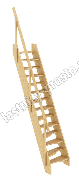 Ступени и поручень лестницы изготовлены из ясеня, остальные элементы из сосны.
