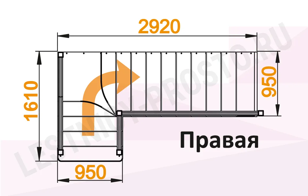Схема лестницы К-032М с поворотом направо