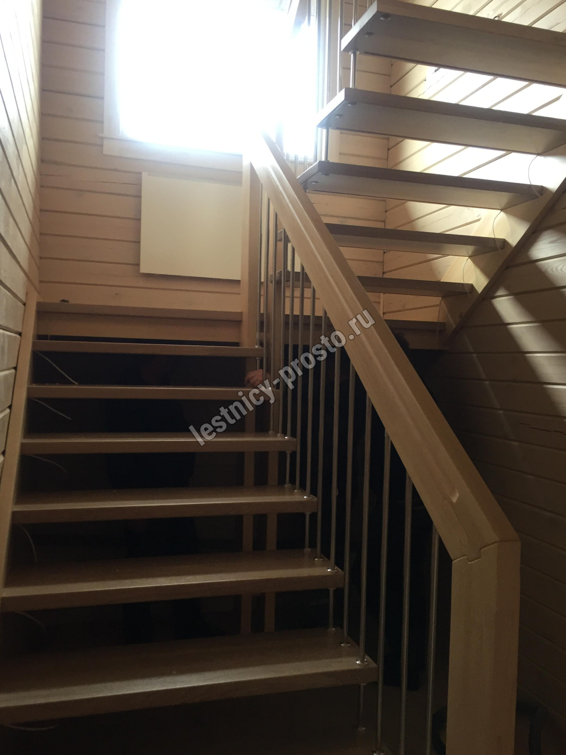 возможна комбинированная лестница: из сосны (ступени бук, ясень, дуб);