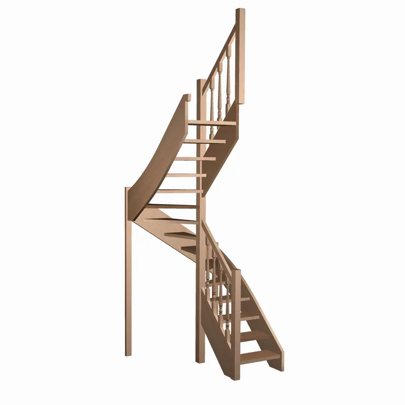 Базовый комплект включает в себя деревянные элементы лестницы и ограждения без какого-либо покрытия. В стандартной комплектации лестницы поставляются с квадратными столбами и точеными балясинами, при желании, можно заменить вид ограждений на любые другие из нашего каталога (оплачивается и оговаривается отдельно). Под заказ возможно изготовление данной лестницы с другими размерами, подходящими вашему помещению.