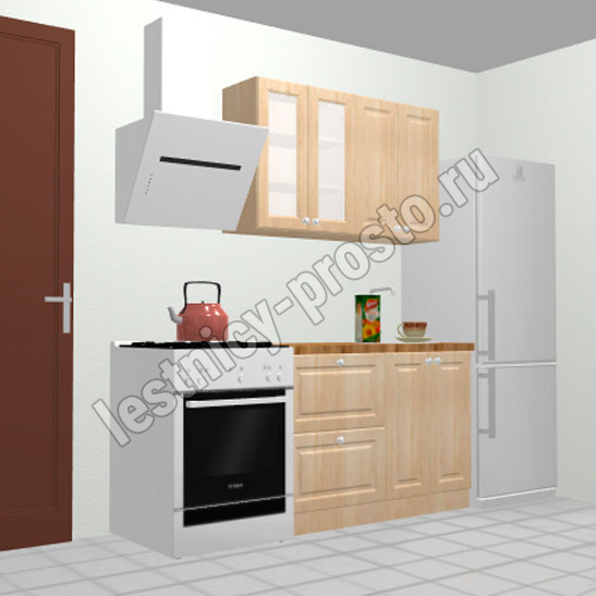 Кухня 1.2 х 2.14 м, массив сосны, без покраски