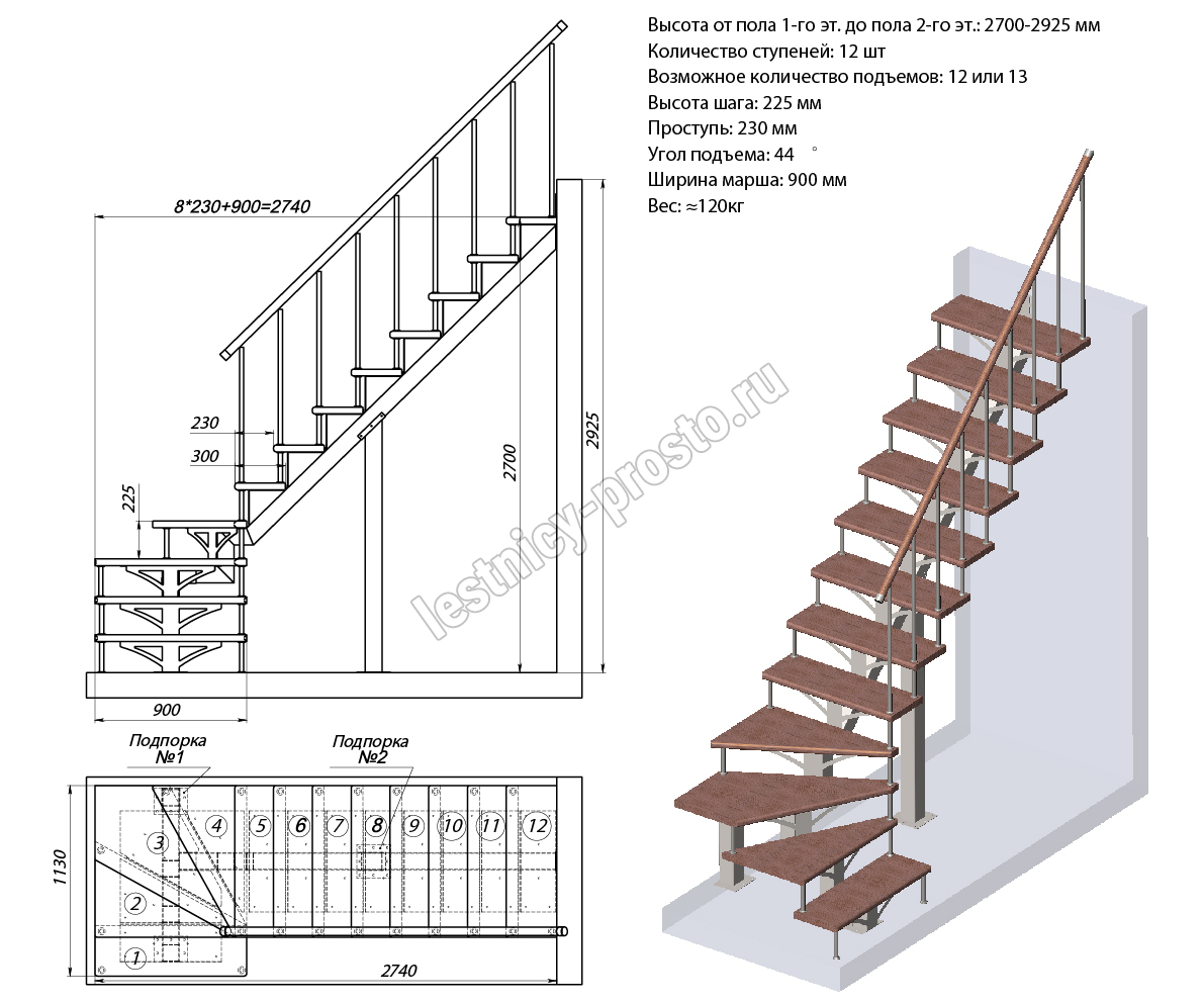 - таким образом вы получаете возможность увеличить общую высоту подъёма лестницы до необходимой.