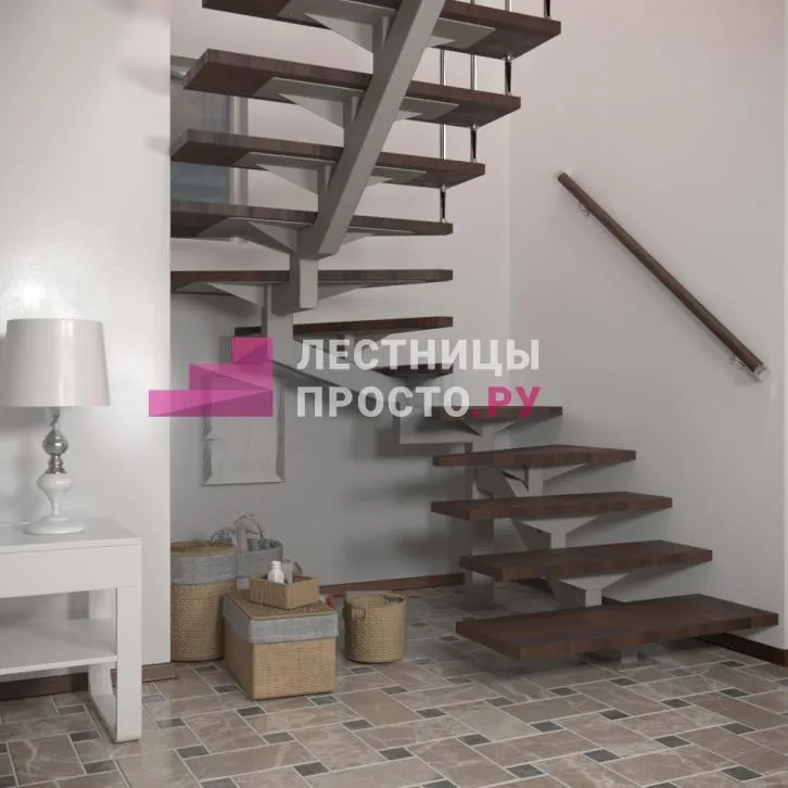 Конструкция представляет собой стальной монокосоур, на который крепятся ступени из выбранной породы дерева.