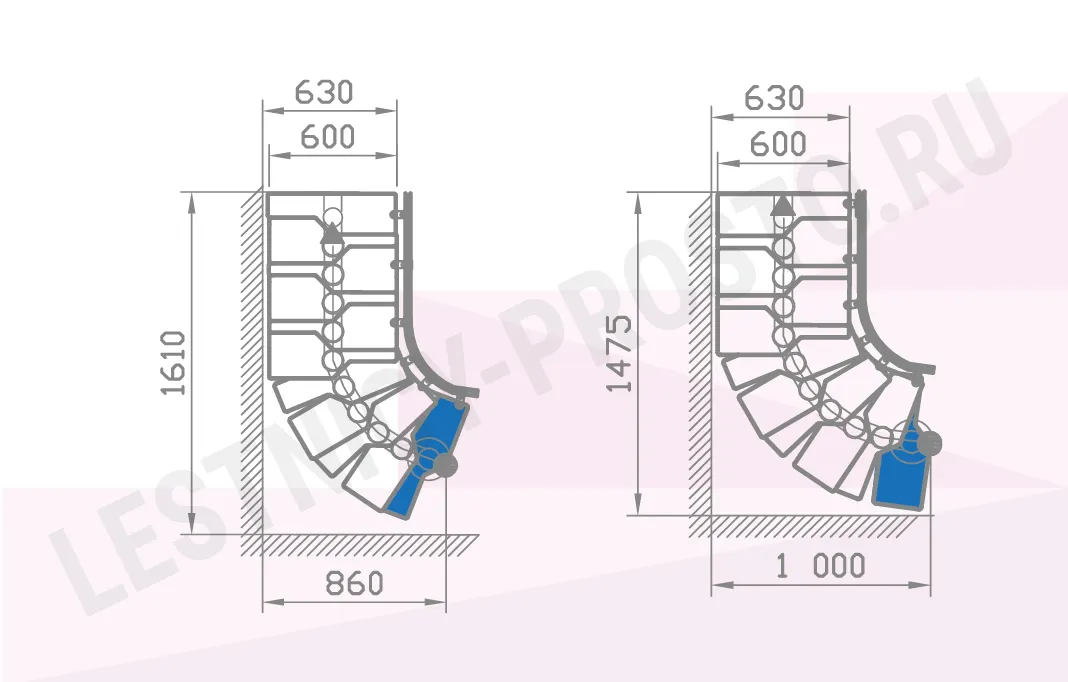 Параметры ступени и высоты шага лестницы Mini