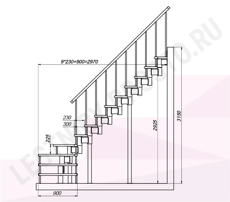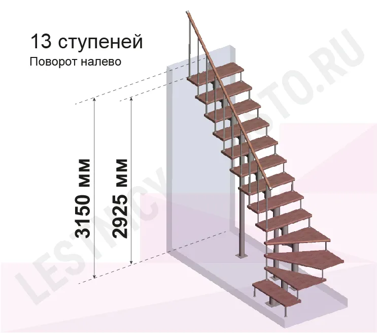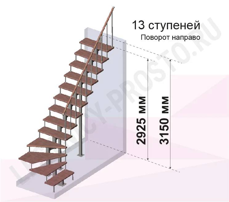Высота лестницы 2925 - 3150 (13 ступеней) мм