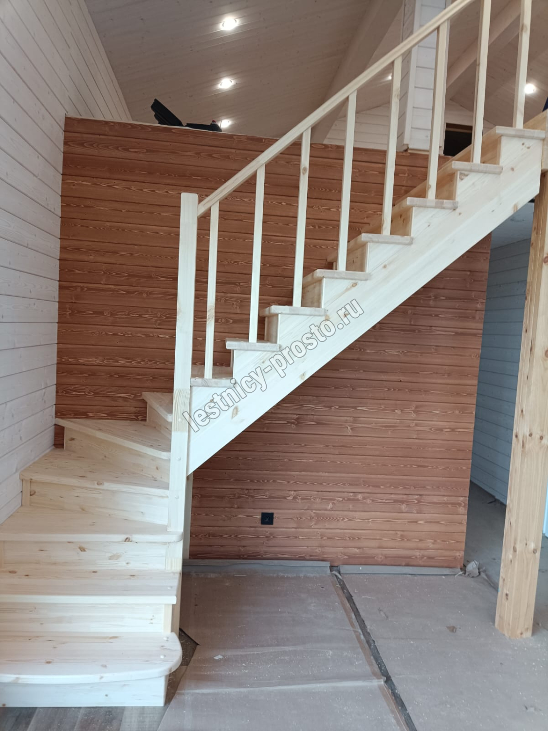 Базовый комплект включает в себя деревянные элементы лестницы и ограждения без какого-либо покрытия.