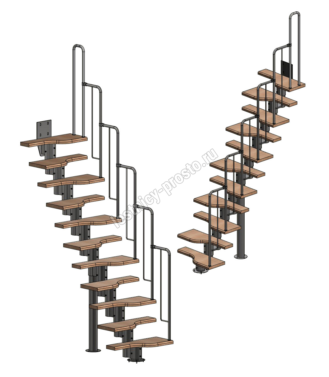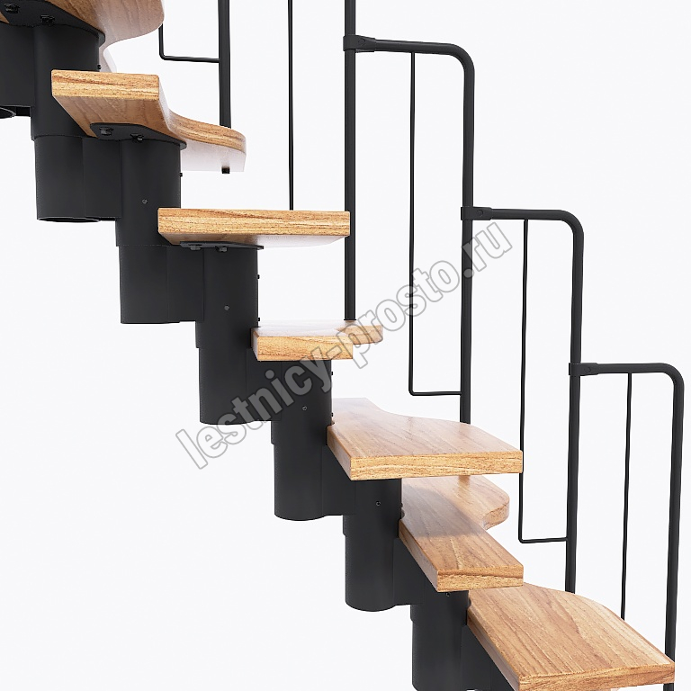 Лестница Prosto Urban Black гусиный шаг 700 мм, h198-288 см (11 ступеней), дуб
