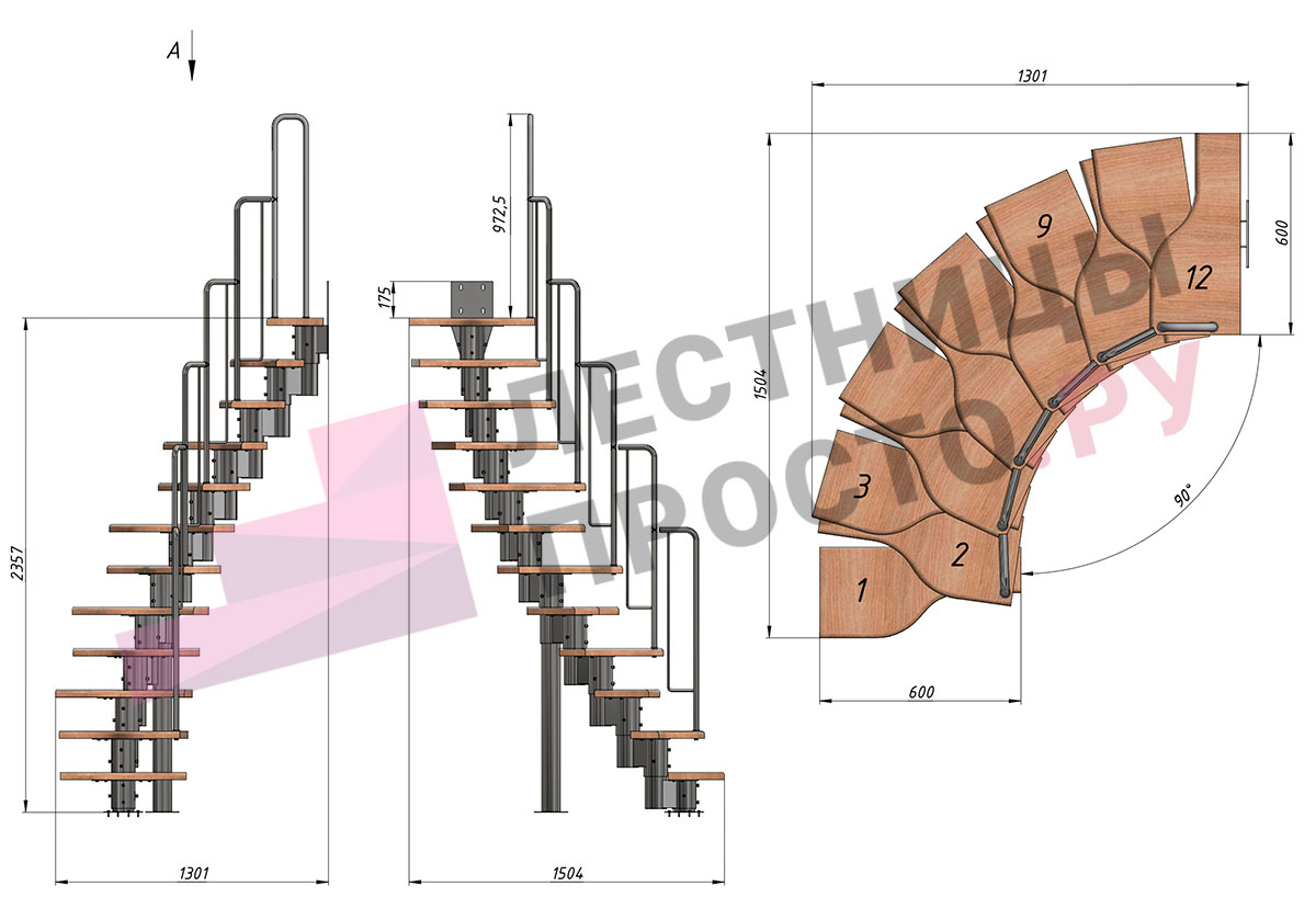 Высота лестницы 2160 - 3120 (12 ступеней) мм