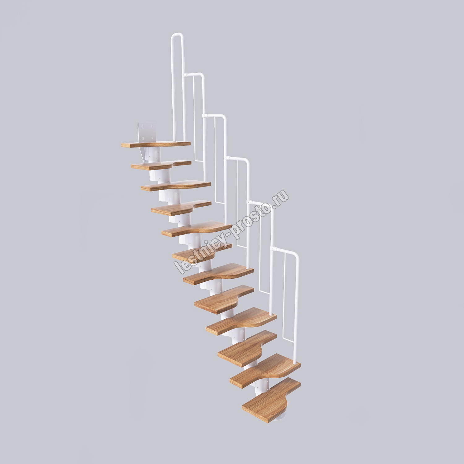 Лестница Prosto Urban White гусиный шаг 600 мм, h198-288 см (11 ступеней), берёза мультиплекс