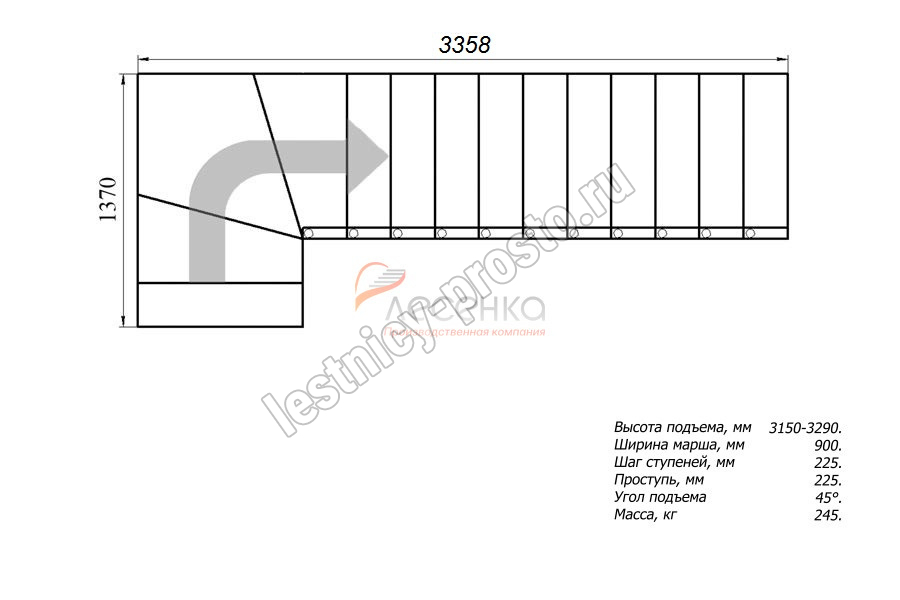 Модульная лестница Фаворит 225 3150-3290, Белый, Сосна, Крашеная, Без Ступений