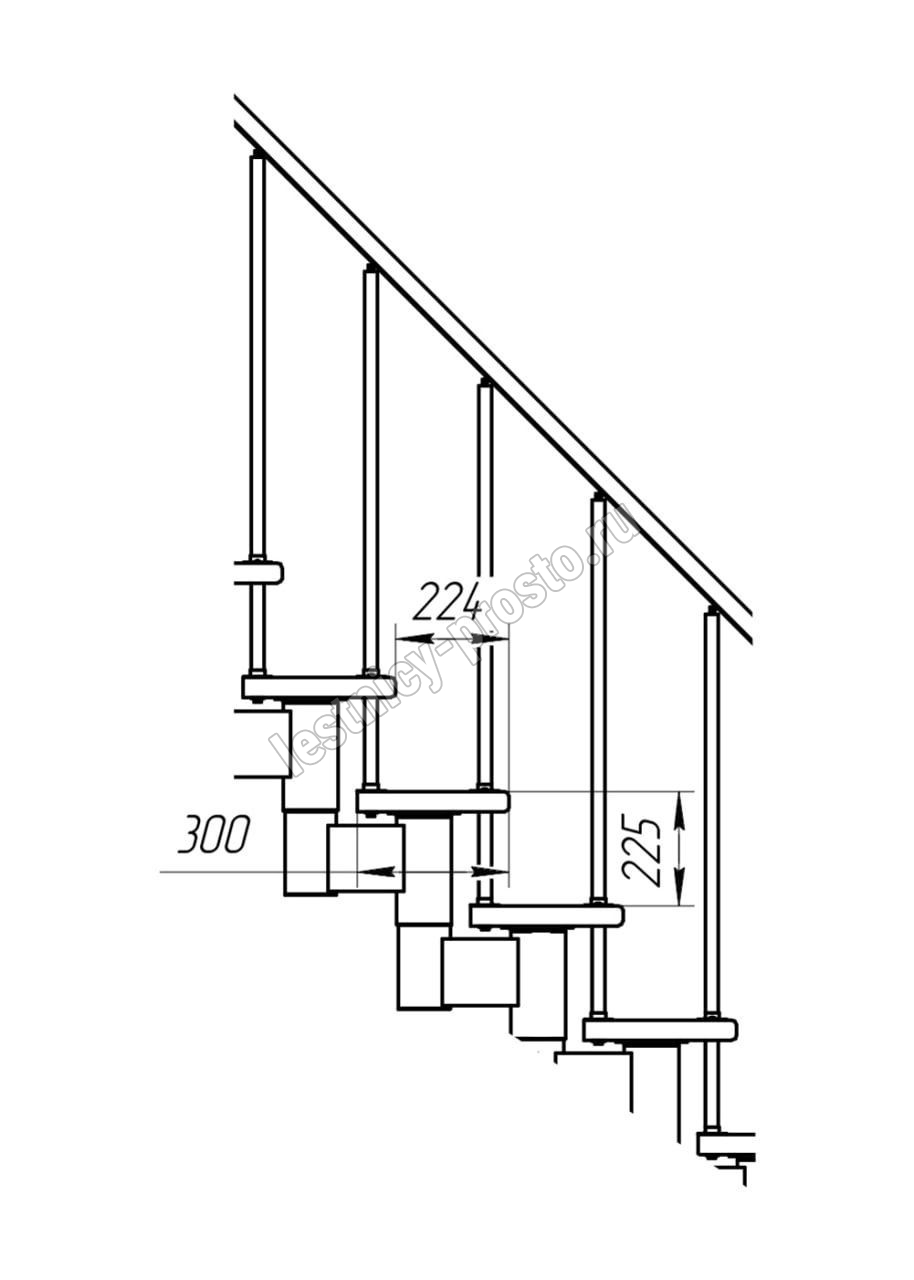Модульная лестница Комфорт 225 3150-3290, Черный, Сосна, Нержавеющая сталь