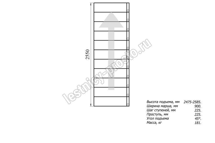 Модульная лестница Стандарт 2475-2585, Белый, Лиственница, Нержавеющая сталь