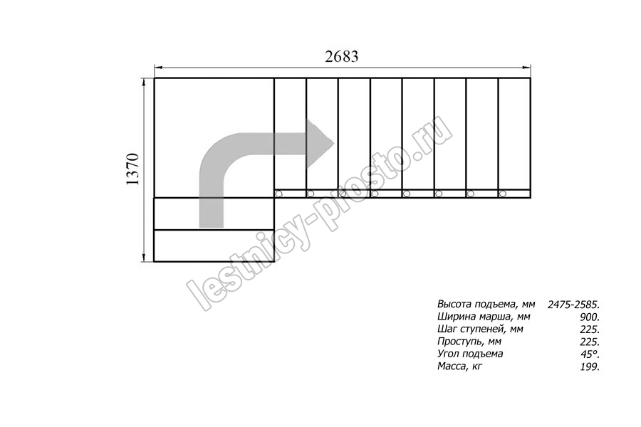 Модульная лестница Статус 225 2475-2585, Серый, Лиственница, Крашеная