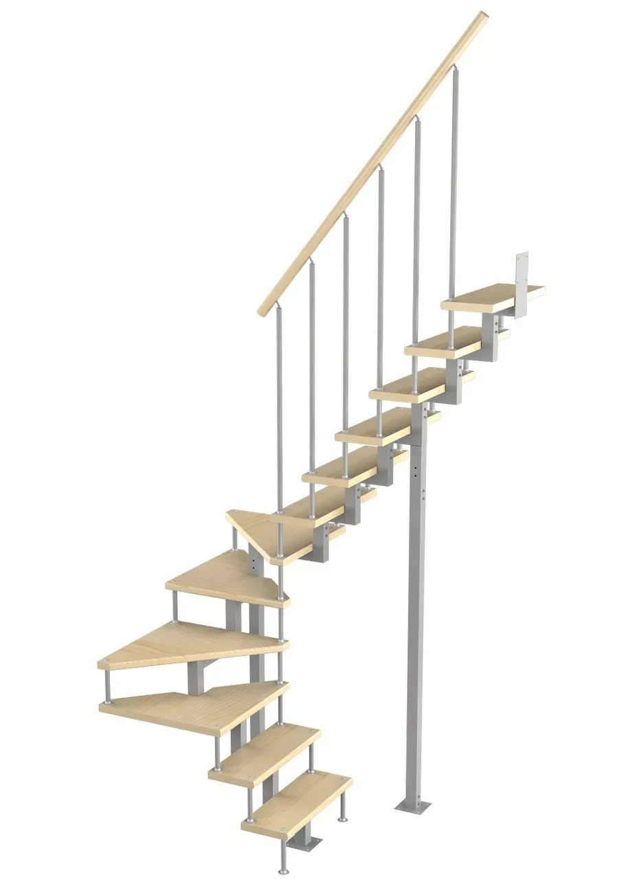 Модульная малогабаритная лестница Эксклюзив 2025-2250, Серый, Сосна, Нержавеющая сталь