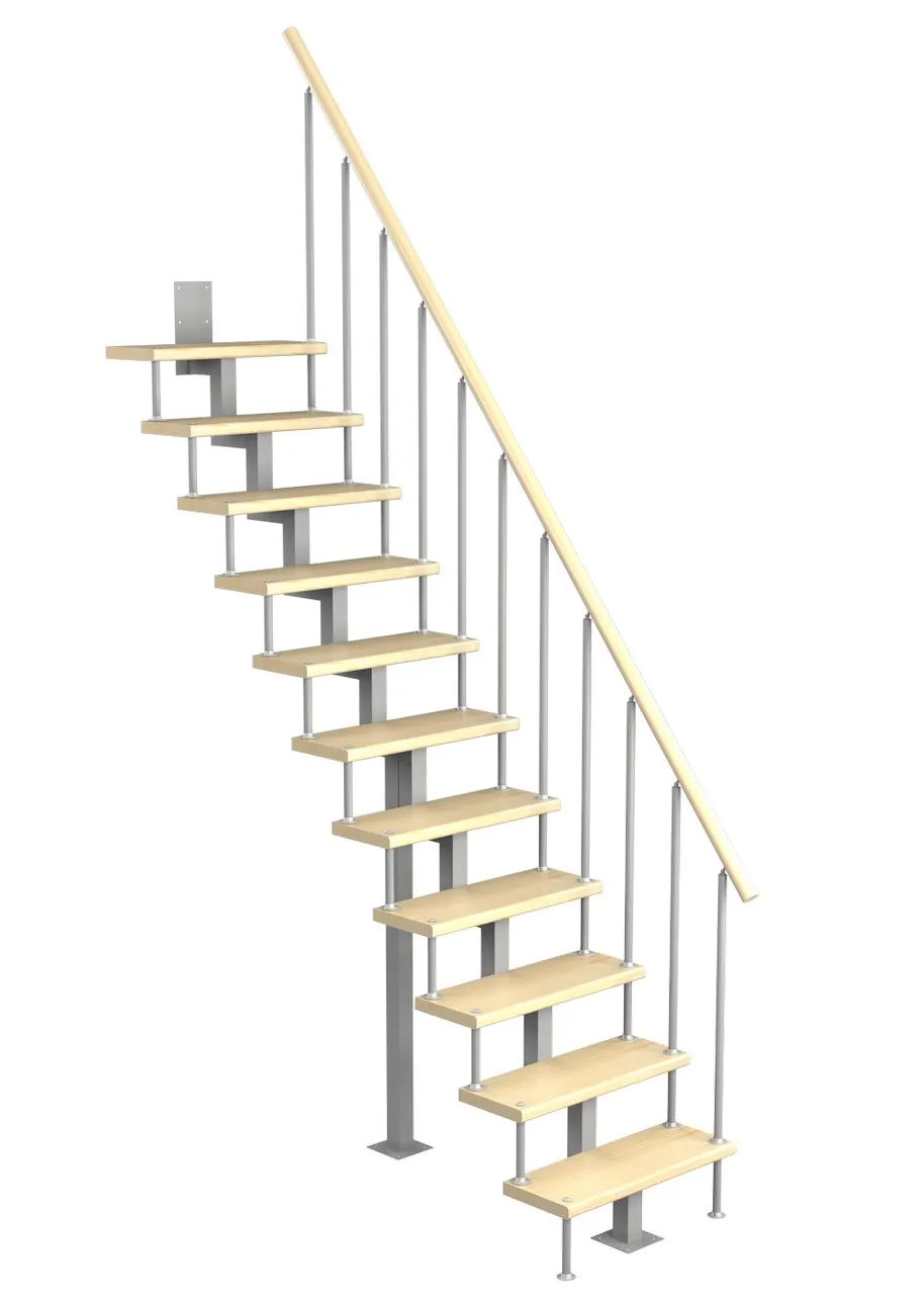 Модульная малогабаритная лестница Линия 2475-2700, Белый, Бук, Нержавеющая сталь