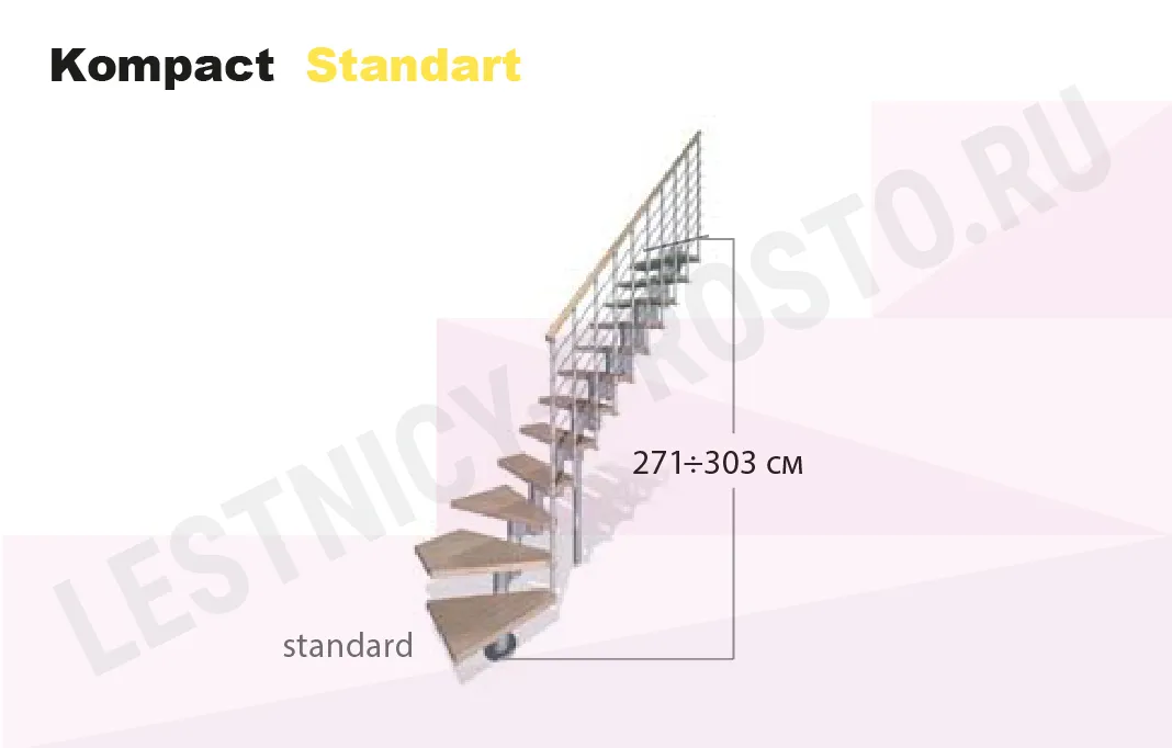 При монтаже этой лестницы, возможно регулировать высоту и глубину шага, таким образом можно получить лестницу под высоты этажа в диапазоне 2250 - 3030 мм, кроме того, установив дополнительный комплект увеличения высоты, можно поднять высоту лестницы до 3730 мм.