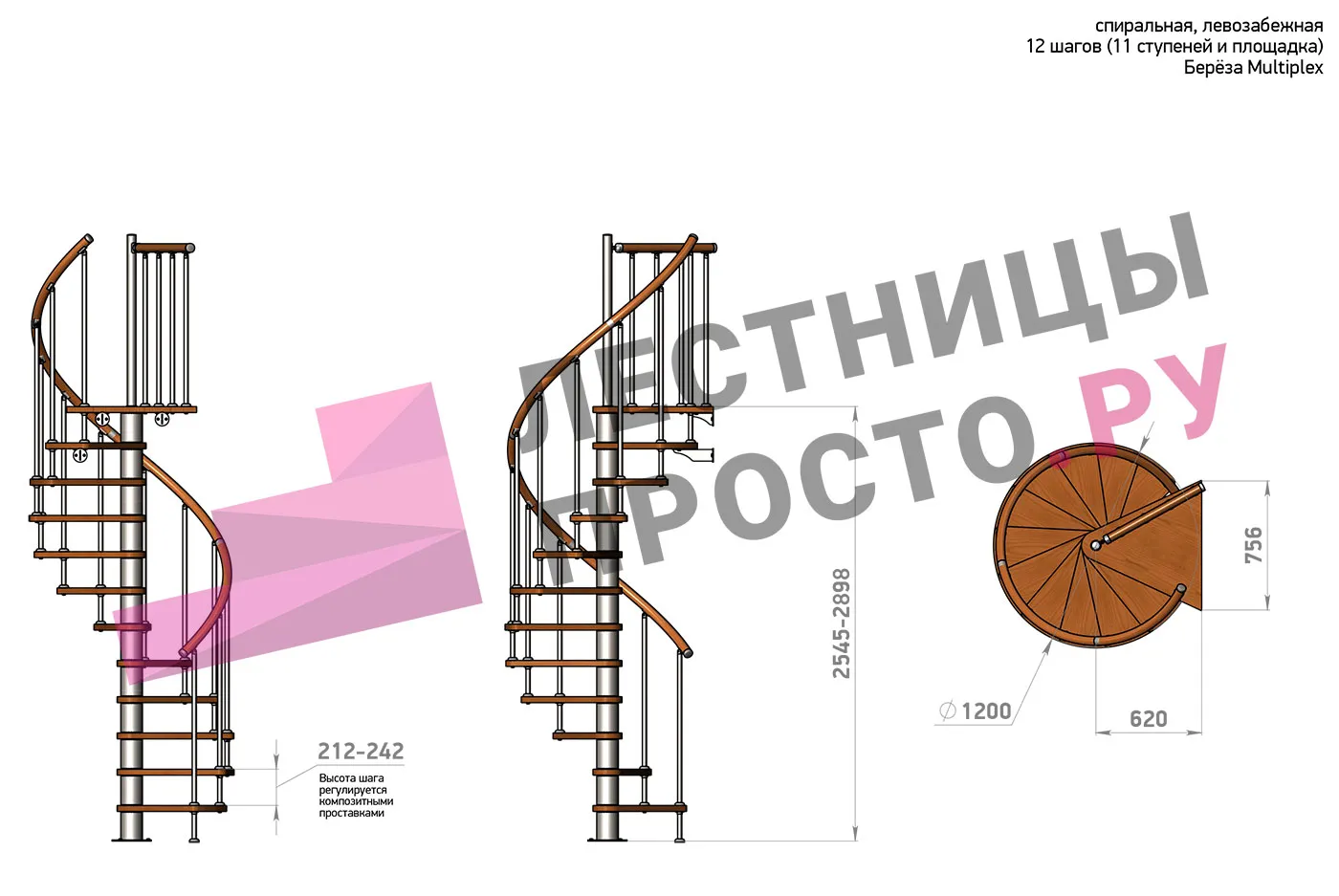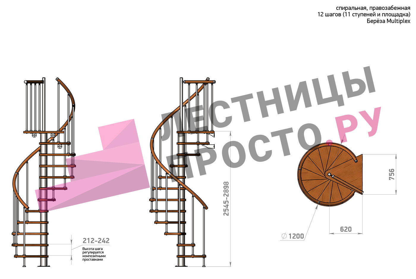 Высота ступеней регулируется с шагом 3 мм. в пределах 212-242 мм., благодаря чему, лестница прекрасно подгоняется под необходимую высоту.