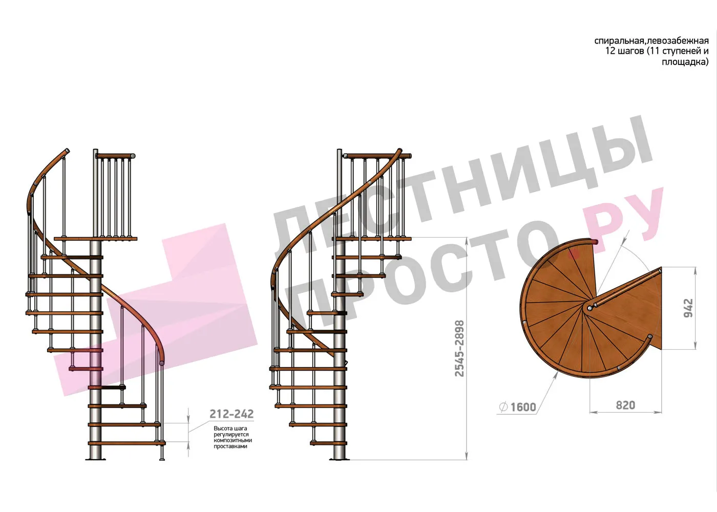 | Винтовая лестница Prosto Spiral Black D160см, h254.5-289.8 см |
