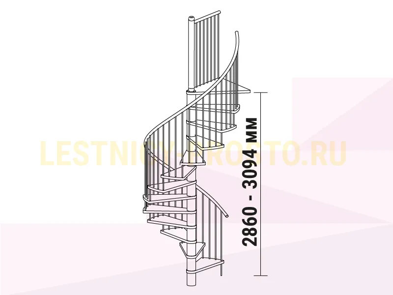 Параметры лестницы SPIRAL DECOR 160 с разным количеством ступеней