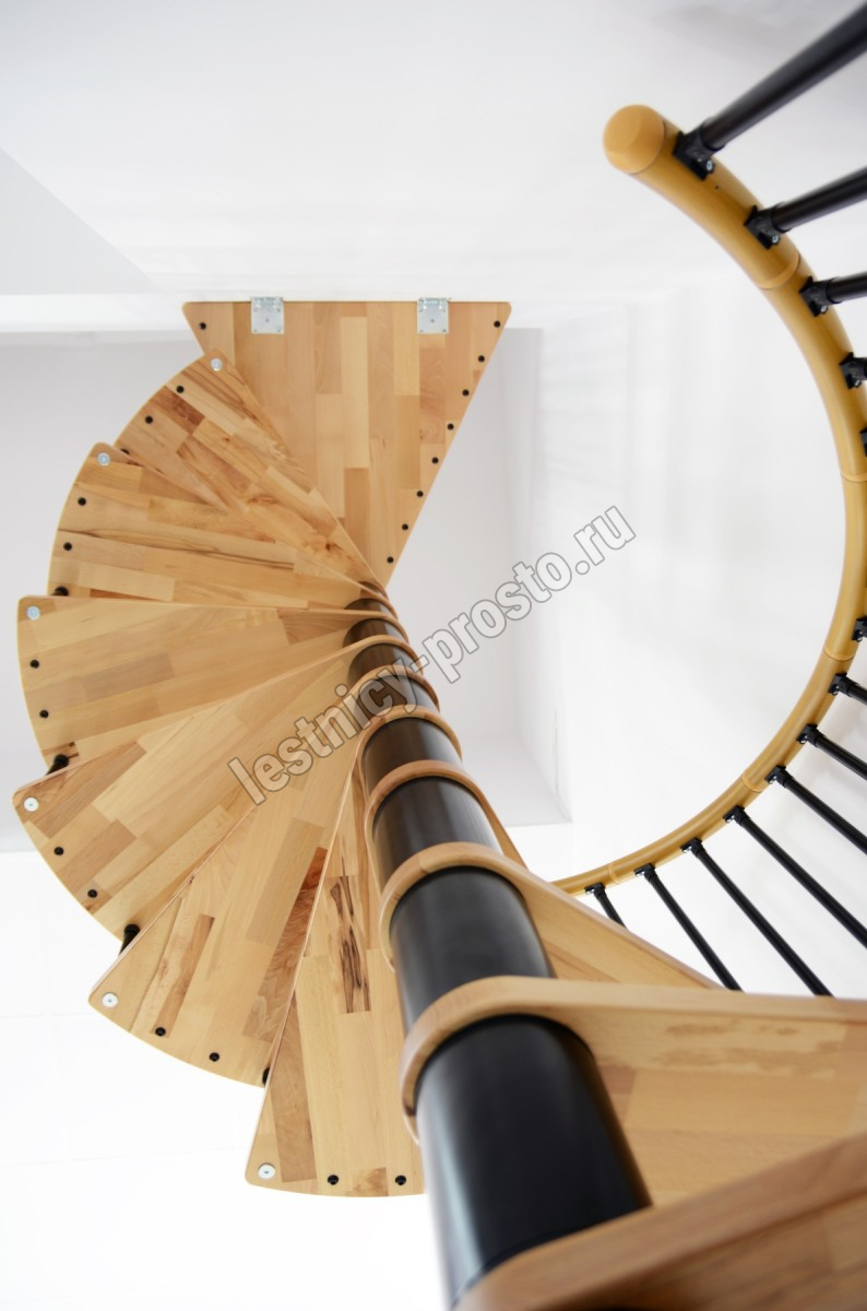Поручень изготовлен из массива дуба в тон ступеням. Поручень и ступени лестницы покрыты износостойким защитным лаком.