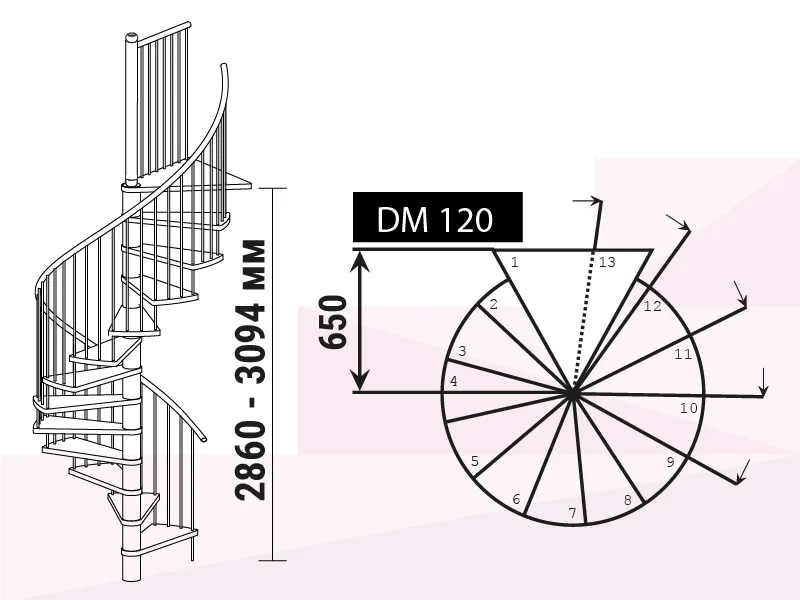 Благодаря возможности регулировать высоту шага с помощью пластиковых вставок (входят в базовый комплект), высоту лестницы можно варьировать в пределах от 2860 до 3090 мм.