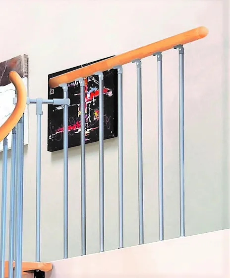 Поручень изготовлен из массива дуба в тон ступеням. Поручень и ступени лестницы покрыты износостойким защитным лаком.