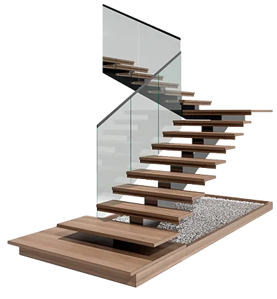 Отделка двухмаршевой бетонной лестницы деревом LP-1-44