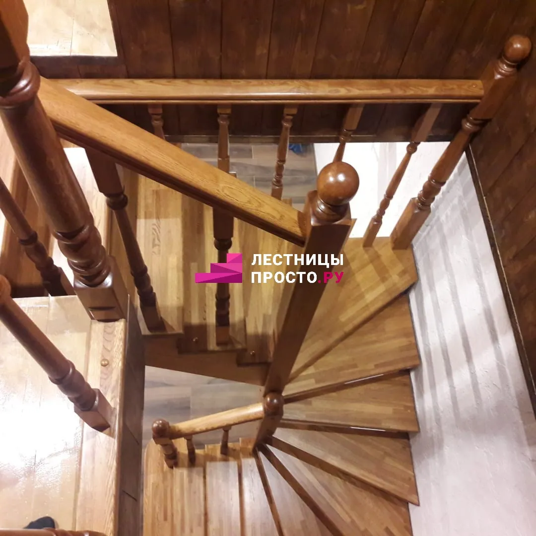 Лестница изготовлена из дуба паркетной склейки.